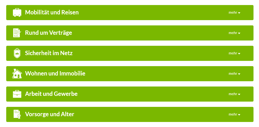 Neben der telefonischen Rechtsberatung und der Online-Rechtberatung findet der Kunde dann auch die Lebensbereiche.