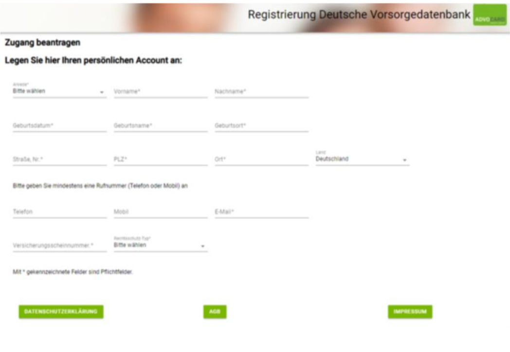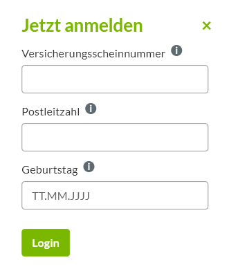Im Fenster „Jetzt anmelden“ erfolgt ein Login durch eintragen der VersicherungsscheinNr. und der Postleitzahl. Die Versicherungsscheinnummer steht auf dem Versicherungsschein und der ADVOCARD (Rechtsschutzkarte).