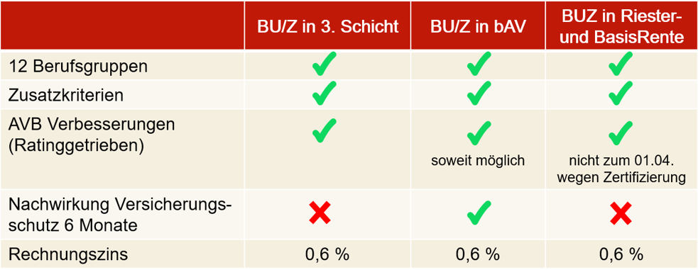 Übersicht: Welche Neuerungen in der BU/Z gelten in welcher Schicht?