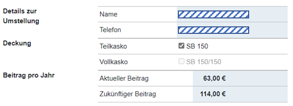 Deswegen ist hier immer die Deckung Teilkasko und Vollkasko zu sehen. Allerdings ist die Vollkasko-Checkbox nur bei bestimmten Fahrzeugarten auswählbar.