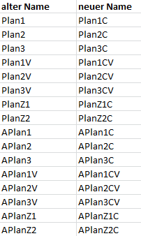 Die genaue Bezeichnung der umbenannten Tarife entnehmen Sie bitte nachstehender Tabelle: